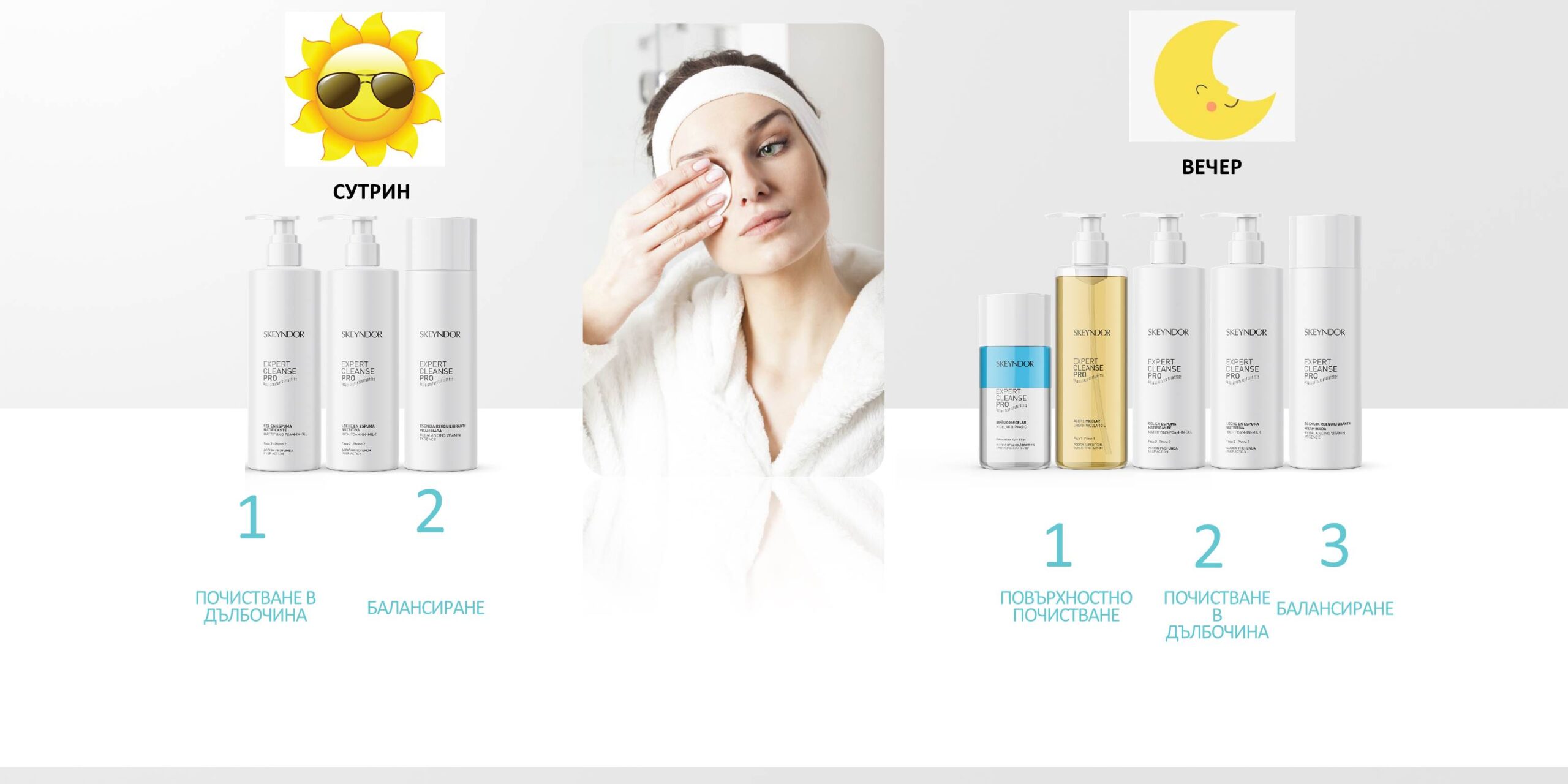 Skeyndor създаде Експертна линия за почистване на кожата на лицето – Expert Cleanse Pro! Това е идеалната линия за почистване и подготовка на кожата преди всякакви процедури в салона, както и перфектно подбрани продукти за ефективно ежедневно почистване у дома.